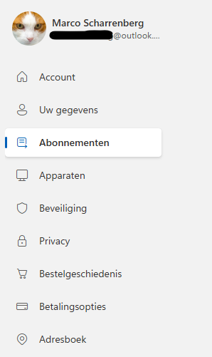 1. Ga in je account van Microsoft naar Abonnementen.