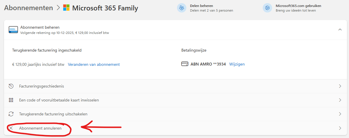 Ik kwam er toevallig achter dat mijn abonnement van Microsoft Office 365 Family in 2025 omhoog ging van €99,- naar €129,- Ik kon mij niet herinneren dat ik van Microsoft een bericht heb gehad waar dit in vermeld stond. Eigenlijk best wel brutaal om dit zo te doen. Maar goed. Het is een groot bedrijf en die mogen dit soort praktijken schijnbaar ongestraft doen.