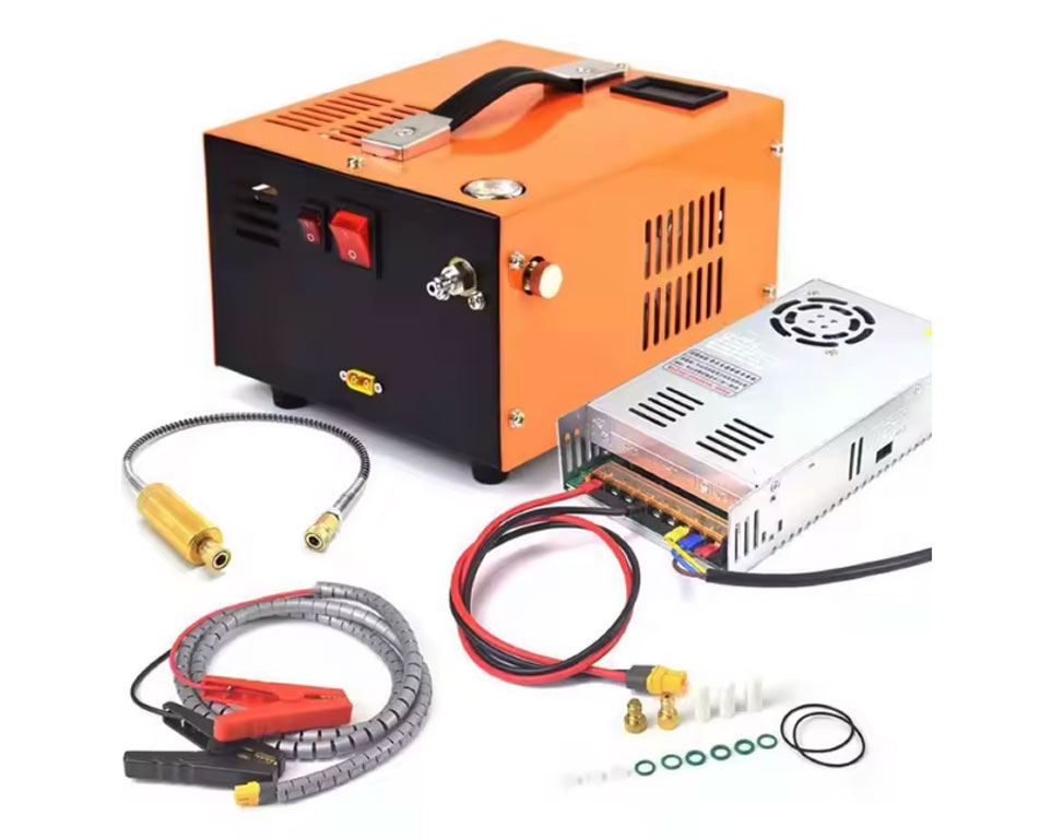 Bij PCP heb je een kogeltje, en de luchtdruk die opgeslagen is in het wapen. De druk van die lucht kan oplopen tot 300 Bar. Om deze hoge druk te bereiken ga ik een compressor gebruiken.